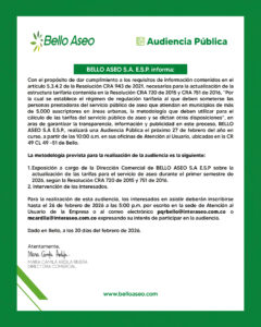 A continuación, encontrará el acceso a la información pública de este prestador, acorde con lo establecido en la Ley 1712 de 2014, ajustándose al régimen especial de los servicios públicos domiciliarios establecido por la Ley 142 de 1994; la información publicada es relativa con la actividad desarrollada, por lo tanto cualquier información adicional deberá ser solicitada a través de nuestro sistema de atención de PQRS.